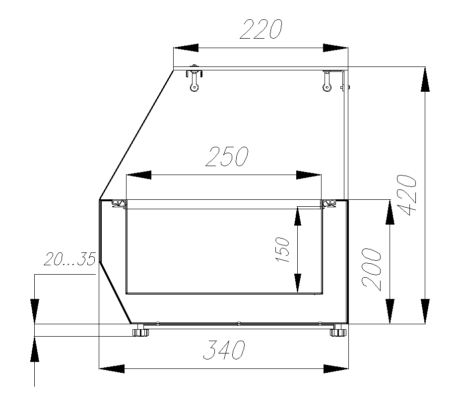 • Максимальная глубина гастроёмкостей — 150 мм