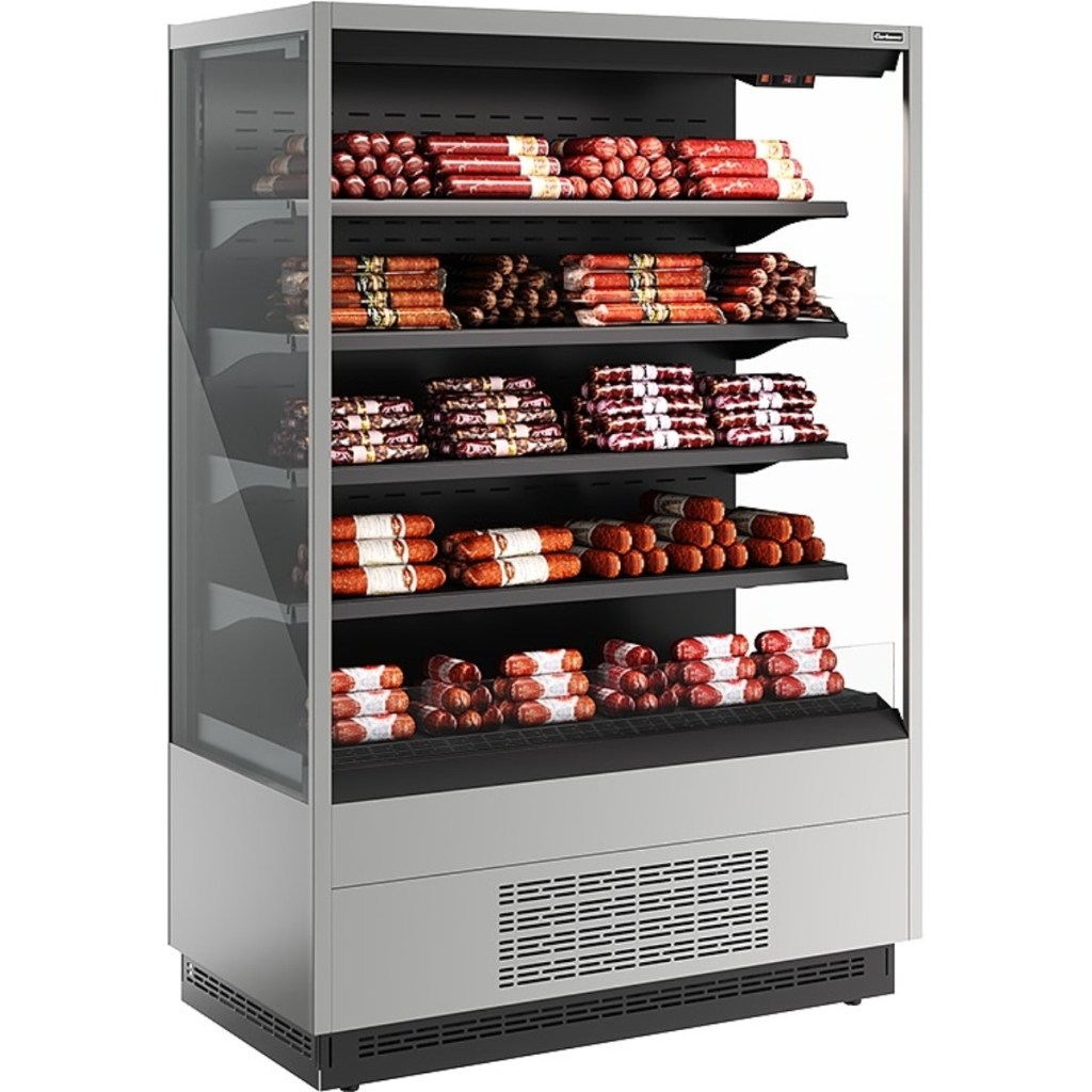 Горка холодильная Carboma FC20-07 VM 1,3-2 (версия 2.0) (ночная шторка) (9006-9005) применяется на предприятиях общественного питания и торговли для охлаждения, кратковременного хранения и предпродажной демонстрации напитков, мяса, птицы, полуфабрикатов, молочных и гастрономических изделий.