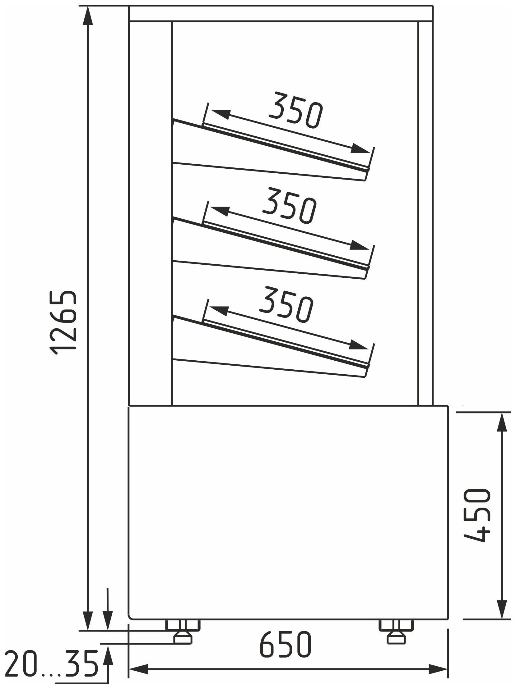 • Глубина выкладки полок — 350 мм