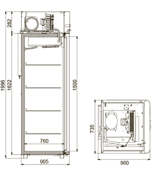 Каталог оборудования Холодильное оборудованиеШкафы холодильныеШкафы морозильные низкотемпературные до -18 °СШкаф морозильный Polair CB107-Sm Alu Шкаф морозильный Polair CB107-Sm Alu Код товара: 062-592 Поделиться: WhatsAppTelegram СравнитьДобавить в КПВ избранное 0 151 662 ₽ В корзину 0 шт Под заказСамовывоз сегодня бесплатно Взять в кредит Купить в лизинг Получить консультацию в WhatsApp Описание Характеристики Отзывы 0 Инструкции 4 Шкаф морозильный Polair CB107-Sm Alu предназначен для демонстрации и надежного хранения продуктов на предприятиях общественного питания и торговли. Цельнозаливной корпус выполнен из стали с полимерным покрытием и дополнен алюминиевыми профилями, что обеспечивает высокую механическую прочность и долговечность конструкции. Алюминиевые элементы дверей и верхней панели подчеркивают современный и премиальный дизайн. Шкаф стабильно работает при температуре окружающей среды до +40 °С и относительной влажности воздуха до 80%, сохраняя продукты в оптимальных условиях. Основные особенности: Электронный блок управления с жидкокристаллическим дисплеем Верхнее расположение агрегата, обеспечивающее удобный доступ к внутреннему объему Клапан Шредера для обслуживания системы охлаждения Компенсационный клапан с ПЭНом обогрева для предотвращения перепадов давления ПЭН обогрева трубки слива конденсата и ПЭН обогрева дверного проема для защиты от наледи Распашной тип дверей с возможностью изменения стороны открывания Интегрированные ручки, встроенные в алюминиевые профили дверей Эластичные уплотнители с магнитными вставками, обеспечивающие максимальную герметизацию Встроенная внутренняя подсветка для удобного обзора содержимого Микропереключатель, отключающий вентилятор и включающий подсветку при открытии двери Регулируемые по высоте ножки и педаль для открывания двери, повышающие эргономику использования Замок для безопасного хранения продукции 4 полки формата GN 2/1 (530×650 мм) с допустимой нагрузкой до 40 кг Толщина теплоизоляции корпуса — 61 мм Изображение товара, представленного на фото, может отличаться от его фактического вида. Показать все Габаритные размеры735×945×1996 ммДиапазон рабочей температурыдо -18 °CДлина735 ммГлубина450 ммВысота1996 ммОбъём700 лМатериал корпусаНержавеющая сталь Тип управленияМеханическое Расход электроэнергии в сутки12 кВтКоличество полок2 штКоличество дверей1 штЗамокЕсть Тип двериМеталлическая Способ открыванияРаздвижные (купе) Напряжение220 ВХладагентR290 Расположение агрегатаНижнее Габариты в упаковке850×988×2160 ммВес нетто128 кгВес брутто152 кгБрендPolair Оставить отзыв Еще никто не оставил отзыв на этот товар Схема POLAIR CB107-Sm.jpgИнструкция на POLAIR CB107-Sm.pdfСертификат соответствия.pdfДекларация о соответствии.pdf Похожие товары Перейти в каталог В наличии 51 488 ₽ Шкаф морозильный HURAKAN HKN-UF100G Под заказ 129 541 ₽ Шкаф холодильный низкотемпературный Arkto F0.7-G Под заказ 173 927 ₽ Шкаф морозильный МХМ Капри 1,12Н нержавейка Под заказ 100 040 ₽ Шкаф морозильный Kifato Арктика 750 глухая дверь В наличии 170 078 ₽ Шкаф морозильный с глухой дверью TEFCOLD UF600 GN2/1 В наличии 43 092 ₽ Шкаф морозильный с глухой дверью Haier HF-82WAA Под заказ 117 056 ₽ Шкаф морозильный Ангара 500 М В наличии 746 457 ₽ Шкаф морозильный со стеклом TEFCOLD UFSC1600GCP трехдверный С этим товаром покупают В наличии 139 352 ₽ Витрина холодильная Carboma G110 ВХСр-2,0 (G110 SV 2,0-1) Под заказ 194 989 ₽ Витрина морозильна