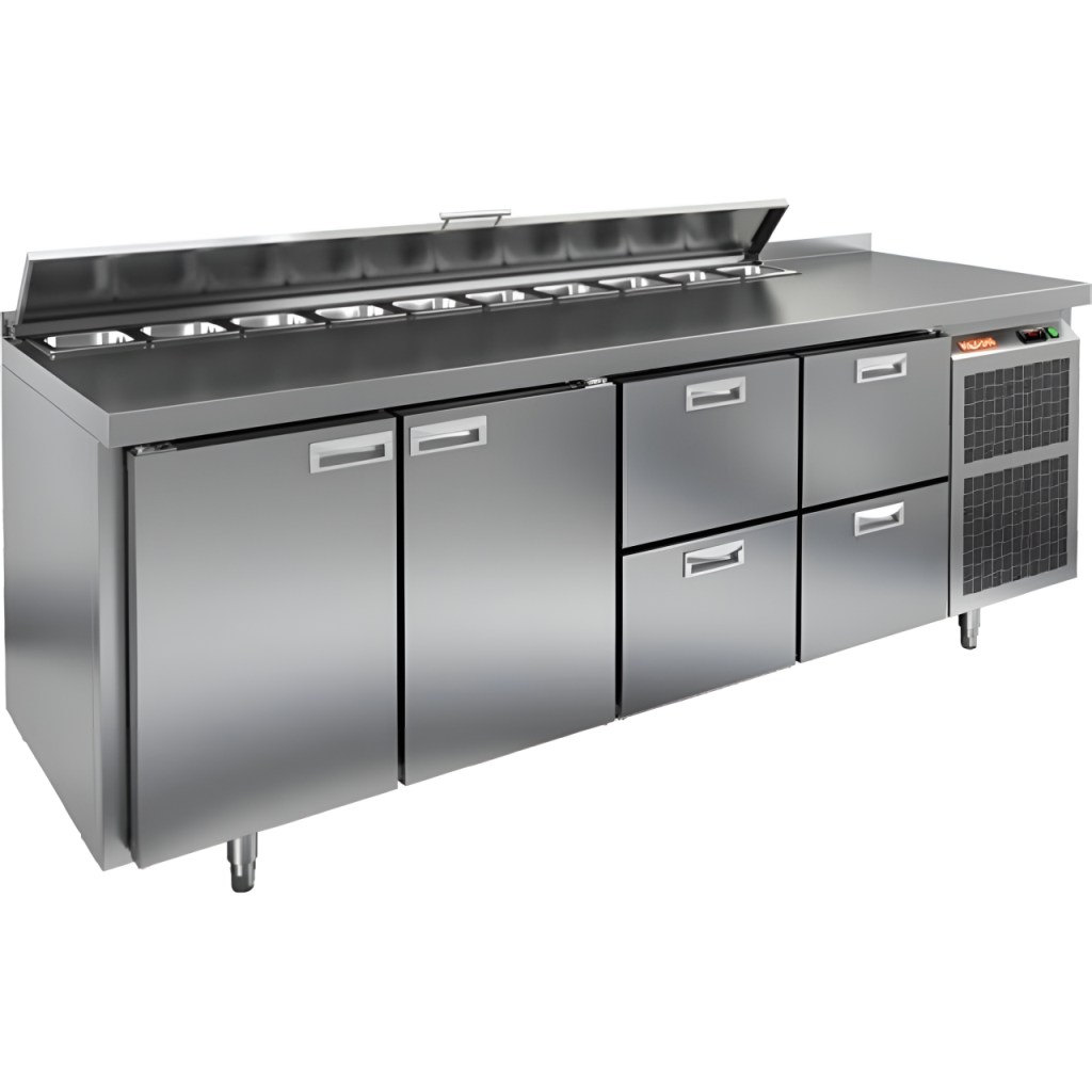 Каталог оборудования Холодильное оборудованиеСтолы охлаждаемыеСтолы холодильные для салатовСтол холодильный для салатов HiCold SL1-332GN (1/3) с крышкой Стол холодильный для салатов HiCold SL1-332GN (1/3) с крышкой Код товара: 064-851 Поделиться: WhatsAppTelegram СравнитьДобавить в КПВ избранное 0 290 692 ₽ В корзину 0 шт Под заказСамовывоз сегодня бесплатно Взять в кредит Купить в лизинг Получить консультацию в WhatsApp Описание Характеристики Отзывы 0 Инструкции 1 Стол холодильный для салатов HiCold SL1-332GN (1/3) предназначен для использования на предприятиях общественного питания и торговли. Он объединяет рабочую поверхность и охлаждаемый отсек, что делает его удобным решением для хранения, охлаждения и подготовки ингредиентов при приготовлении салатов, пиццы и других блюд. Такая конструкция позволяет повару работать быстрее и эффективнее, так как все необходимые продукты находятся под рукой. Корпус и столешница выполнены из прочной нержавеющей стали, устойчивой к коррозии и легко поддающейся санитарной обработке. Металлическая крышка защищает продукты от загрязнений и сохраняет их свежесть. Особенности модели: Электронная панель управления — точная настройка температурного режима. 8 выдвижных ящика — быстрое размещение и замена продуктов. Вместимость салат-бара — до 8 гастроемкостей глубиной до 100 мм. Автоматические доводчики — комфорт при загрузке/выгрузке. Легкозаменяемые магнитные уплотнители — надежная герметичность. Открытая агрегатная часть — быстрый доступ для обслуживания. Регулируемые по высоте ножки — устойчивость даже на неровном полу. Толщина столешницы, борта и теплоизоляции — 50 мм, что обеспечивает прочность и энергоэффективность конструкции. HiCold SL1-332GN (1/3) — практичное и удобное решение для профессиональной кухни, обеспечивающее удобную подготовку и хранение ингредиентов.Изображение товара, представленного на фото, может отличаться от его фактического вида. Показать все Габаритные размеры1835×700×850 ммДиапазон рабочей температурыот +2 до +10 °CРасположение агрегатаБоковое Материал столешницыНержавеющая Тип столаС дверьми и ящиками Тип двериГлухая Объём505 лКоличество дверей2 штТип гастроемкостейGN 1/3 Количество ящиков6 штРазмер полки530×325 ммНапряжение220 ВМощность0,46 кВтТип охлажденияДинамическое Тип оттайкиАвтоматическая СтолешницаС бортом Габариты в упаковке2000×850×1000 ммВес нетто120 кгВес брутто140 кгБрендHicold Оставить отзыв Еще никто не оставил отзыв на этот товар Декларация о соответствии.pdf Ранее просмотрено Под заказ 201 682 ₽ Стол холодильный для салатов HiCold SL2-22GN (1/6) без крышки Под заказ 207 532 ₽ Стол холодильный для салатов HiCold SLE3-1111GN высокое стекло Под заказ 178 192 ₽ Стол холодильный для салатов HiCold SLE1-112GN (1/3) О с крышкой