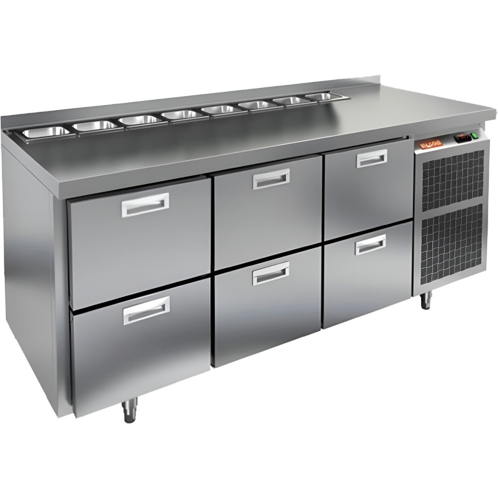 Стол холодильный для салатов HiCold SL2-222GN (1/6) без крышки предназначен для использования на предприятиях общественного питания и торговли. Он подходит для хранения, обработки и кратковременного охлаждения ингредиентов, применяемых при приготовлении пиццы, салатов, закусок и других блюд.