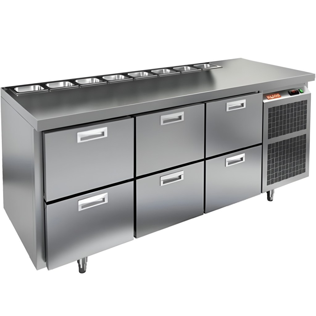 Каталог оборудования Холодильное оборудованиеСтолы охлаждаемыеСтолы холодильные для салатовСтол холодильный для салатов HiCold SL2-222GN (1/6) О без крышки Стол холодильный для салатов HiCold SL2-222GN (1/6) О без крышки Код товара: 064-818 Поделиться: WhatsAppTelegram СравнитьДобавить в КПВ избранное 0 255 861 ₽ В корзину 0 шт Под заказСамовывоз сегодня бесплатно Взять в кредит Купить в лизинг Получить консультацию в Max Описание Характеристики Отзывы 0 Инструкции 1 Стол холодильный для салатов HiCold SL2-222GN (1/6) О без крышки предназначен для использования на предприятиях общественного питания и торговли. Он подходит для хранения, обработки и кратковременного охлаждения ингредиентов, применяемых при приготовлении пиццы, салатов, закусок и других блюд. Модель совмещает охлаждаемый объем и рабочую поверхность, что значительно повышает удобство и скорость работы персонала. Корпус и столешница выполнены из прочной и гигиеничной нержавеющей стали, устойчивой к влаге, загрязнениям и механическим повреждениям. Особенности модели: Электронная панель управления — точная настройка температуры. Салат-бар на 8 гастроемкостей — быстрый доступ к ингредиентам. 6 внутренних ящиков — удобное размещение и легкая замена продуктов. Автоматические доводчики дверей — комфортная эксплуатация. Съёмные магнитные уплотнители — герметичность и стабильная температура. Открытая агрегатная часть — лёгкое обслуживание. Регулируемые ножки — установка на любой поверхности. Глубина гастроемкостей до 150 мм, столешница и теплоизоляция — 50 мм. HiCold SL2-222GN (1/6) О без крышки — универсальное и функциональное решение для профессиональной кухни, позволяющее оптимизировать рабочие процессы и повысить производительность за счет удобного хранения и быстрого доступа к ингредиентам.Изображение товара, представленного на фото, может отличаться от его фактического вида. Показать все Габаритные размеры1835×700×850 ммДиапазон рабочей температурыот +2 до +10 °CРасположение агрегатаБоковое Материал столешницыНержавеющая Тип столаС ящиками Объём505 лТип гастроемкостейGN 1/6 Количество ящиков6 штНапряжение220 ВМощность0,5 кВтТип охлажденияДинамическое Тип оттайкиАвтоматическая СтолешницаБез борта Габариты в упаковке2000×850×1000 ммВес нетто130 кгВес брутто180 кгБрендHicold Оставить отзыв Еще никто не оставил отзыв на этот товар Декларация о соответствии.pdf Ранее просмотрено Под заказ 222 022 ₽ Стол холодильный для салатов HiCold SLE3-1111GN полипропилен, без крышки Под заказ 43 547 ₽ Дверь холодильная распашная одностворчатая СТ-РДО-900*2200/80 Под заказ 56 186 ₽ Дверь холодильная распашная одностворчатая НТ-РДО-900*2200/80 Под заказ 374 850 ₽ Компрессорно-конденсаторный агрегат POLAIR CUM-MLZ038
