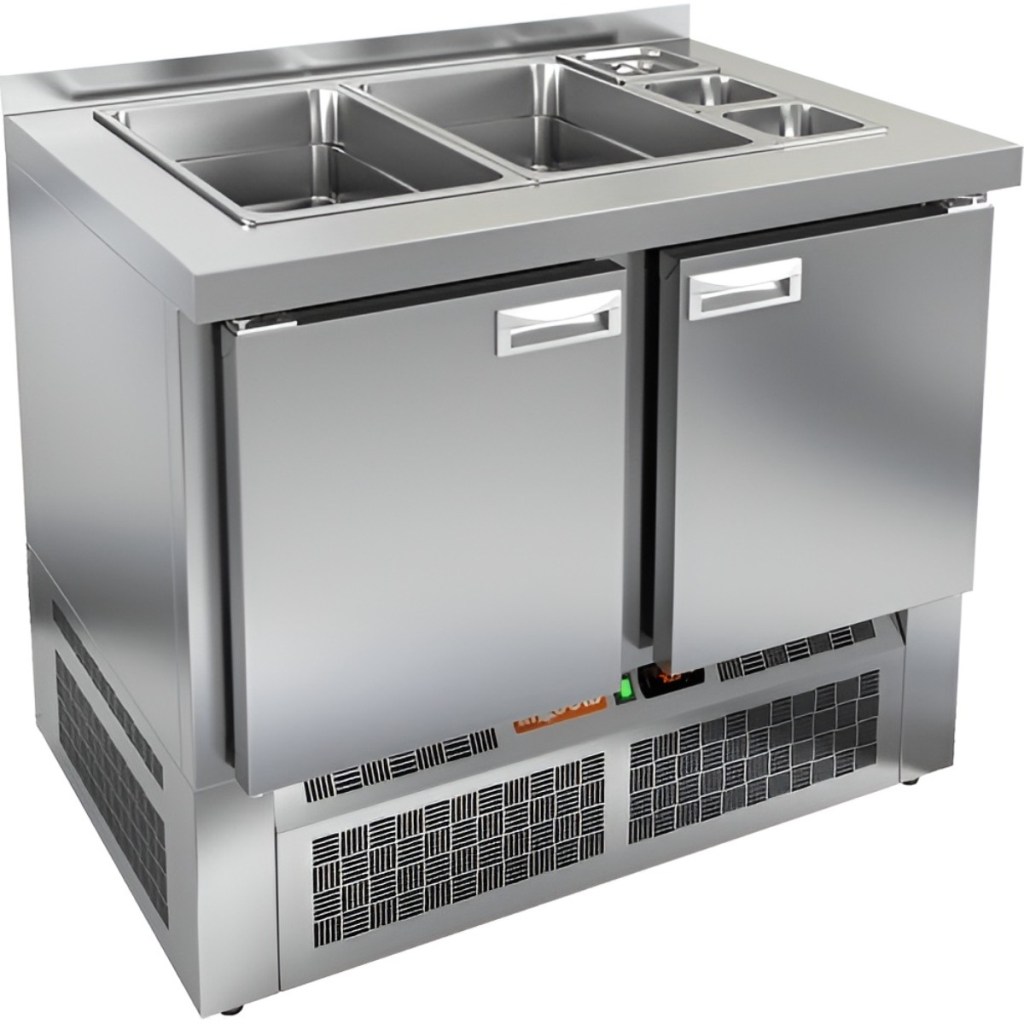 Каталог оборудования Холодильное оборудованиеСтолы охлаждаемыеСтолы холодильные для салатовСтол холодильный для салатов HiCold SLE3-11GN без крышки Стол холодильный для салатов HiCold SLE3-11GN без крышки Код товара: 064-935 Поделиться: WhatsAppTelegram СравнитьДобавить в КПВ избранное 0 118 162 ₽ В корзину 0 шт Под заказСамовывоз сегодня бесплатно Взять в кредит Купить в лизинг Получить консультацию в WhatsApp Описание Характеристики Отзывы 0 Инструкции 2 Стол холодильный для салатов HiCold SLE3-11GN без крышки предназначен для охлаждения и кратковременного хранения продуктов, используемых при приготовлении салатов, закусок, сэндвичей и других блюд. Он идеально подходит для предприятий общественного питания и торговли, где требуется удобный доступ к охлаждённым ингредиентам. Модель сочетает в себе рабочую поверхность и охлаждаемый объём, что обеспечивает эффективную организацию кухонного пространства. Корпус и столешница изготовлены из нержавеющей стали, что гарантирует долговечность конструкции, устойчивость к коррозии и соответствие санитарным нормам. Особенности модели: Электронная панель управления — обеспечивает точный контроль температуры Две полки формата GN 1/1 — для удобного размещения ингредиентов Салат-бар вмещает 2 GN 1/1 и 3 GN 1/6 — для организации набора продуктов Автоматические доводчики дверей с фиксацией открытого положения Магнитные уплотнители — легко заменяются при износе Открытая агрегатная часть — упрощает обслуживание оборудования Регулируемые ножки — для устойчивой установки на любой поверхности Глубина гастроемкостей — до 100 мм Толщина столешницы — 50 мм Толщина теплоизоляции — 50 мм HiCold SLE3-11GN без крышки — функциональное решение для профессиональной кухни, позволяющее хранить ингредиенты в охлаждённом состоянии и всегда иметь их под рукой во время приготовления блюд. Изображение товара, представленного на фото, может отличаться от его фактического вида. Показать все Габаритные размеры1000×700×1315 ммДиапазон рабочей температурыот +2 до +10 °CРасположение агрегатаНижнее Материал столешницыНержавеющая Тип столаС дверьми Тип двериГлухая Объём245 лКоличество дверей2 штТип гастроемкостейGN 1/1, GN 1/6 Размер полки530×325 ммНапряжение220 ВМощность0,15 кВтТип охлажденияДинамическое Тип оттайкиАвтоматическая СтолешницаС бортом Вес нетто95 кгВес брутто140 кгБрендHicold Оставить отзыв Еще никто не оставил отзыв на этот товар Паспорт на HICOLD SLE3-11GN.pdfДекларация о соответствии.pdf Ранее просмотрено Под заказ 90 118 ₽ Дверь холодильная распашная двустворчатая СТ-РДД-2200*2200/80 Под заказ 146 782 ₽ Стол холодильный для салатов HiCold SLE2-111SN (1/6) О с крышкой Под заказ 147 232 ₽ Стол холодильный для салатов HiCold SLE2-111GN (1/6) О с крышкой Под заказ 142 912 ₽ Стол холодильный для салатов HiCold SLE1-111SN (1/3) без крышки Под заказ 184 581 ₽ Стол холодильный для салатов HiCold SLE2-22SN (1/6) с крышкой Под заказ 174 051 ₽ Стол холодильный для салатов HiCold SLE3-111GN высокое стекло Под заказ 867 419 ₽ Котел пищеварочный Аbat КПЭМ-200-ОМ2 со сливным краном