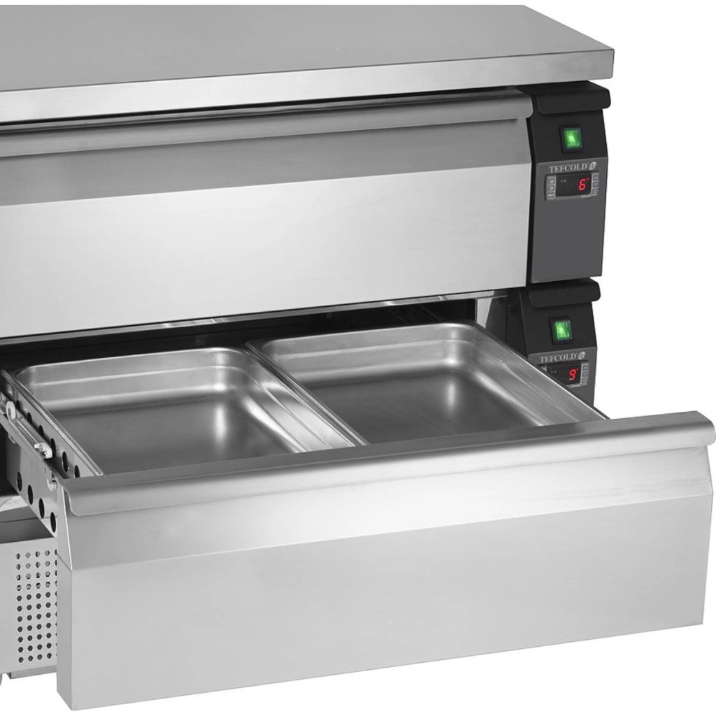 Каталог оборудования Холодильное оборудованиеСтолы охлаждаемыеСтолы холодильные комбинированныеСтол холодильно-морозильный TEFCOLD UNI-DRAWER UD1-2 Стол холодильно-морозильный TEFCOLD UNI-DRAWER UD1-2 Код товара: 010-373 Поделиться: WhatsAppTelegram СравнитьДобавить в КПВ избранное 0 169 675 ₽ В корзину 0 шт В наличииСамовывоз сегодня бесплатно Взять в кредит Купить в лизинг Получить консультацию в WhatsApp Описание Характеристики Отзывы 0 Инструкции 2 Стол холодильно-морозильный TEFCOLD UNI-DRAWER UD1-2 — профессиональное оборудование для обработки ингредиентов и хранения охлажденных и замороженных продуктов на предприятиях общественного питания и торговли. Корпус и внутренняя отделка выполнены из нержавеющей стали SS304, что обеспечивает долговечность и удобство в уходе. Модель оснащена расположенным снизу агрегатным отсеком, столешницей, гастрономированным выдвижным ящиком и кнопочной панелью управления с цифровым дисплеем. Особенности модели: Динамическое охлаждение с равномерным распределением воздуха Электронный контроллер Dixell с цифровой индикацией температуры Автоматическая оттайка Легкое переключение между холодильным и морозильным режимами Символьная индикация работы компрессора и функция самодиагностики 4 поворотные колеса, включая 2 со стопором, для удобства перемещения Экологичный энергоэффективный хладагент R290 Прочные материалы и качественные комплектующие для длительного срока службы Энергоэффективность класса D, климатический класс 5 Формат гастроемкостей GN2/1 Эргономичный и стильный дизайн Температурный режим: от -21 до +4 °C Максимальная температура окружающей среды: 40 °C, влажность до 40% Вместимость гастроемкостей: 2 Общий объем: 78 л, полезный объем: 51 л Энергопотребление: 4,85 кВт/сутки (годовое — 1770 кВт⋅ч) Уровень шума: 54 дБ TEFCOLD UD1-2 — универсальный и надёжный стол для охлаждения и заморозки продуктов с удобным управлением, мобильностью и энергоэффективностью для профессиональных кухонь.Изображение товара, представленного на фото, может отличаться от его фактического вида. Показать все Габаритные размеры905×700×600 ммРасположение агрегатаНижнее Материал столешницыНержавеющая Тип столаС ящиками Общий объем78 лПолезный объем51 лКоличество ящиков1 штТип гастроемкостейGN2/1 Климатический класс5 Уровень шума42 дБНапряжение220 ВРасход электроэнергии в сутки2,21 кВт/сутТип охлажденияДинамический Тип оттайкиАвтоматическая ХладагентR290 Габариты в упаковке1000×800×700 ммВес нетто50 кгВес брутто72 кгБрендTefcold Оставить отзыв Еще никто не оставил отзыв на этот товар Инструкция на TEFCOLD UNI-DRAWER UD1-2.pdfСпецификация на TEFCOLD UNI-DRAWER UD1-2.pdf Похожие товары Перейти в каталог Под заказ 79 461 ₽ Стол холодильный среднетемпературный HiCold SN 1/TN W Под заказ 112 370 ₽ Стол холодильный среднетемпературный Abat СХС-70 с бортом (ящики 1/2) Под заказ 104 947 ₽ Стол холодильный среднетемпературный Abat СХС-70 с бортом (дверь) С этим товаром покупают В наличии 397 290 ₽ Шкаф холодильный для хлебопекарных производств Polair CS107 Bakery Br (Тип 1) В наличии 162 910 ₽ Плита индукционная Аbat КИП-47Н-5,0 Ранее просмотрено В наличии 158 753 ₽ Стол холодильно-морозильный TEFCOLD UD1-3