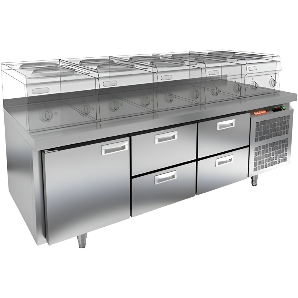 Каталог оборудования Холодильное оборудованиеСтолы охлаждаемыеСтолы холодильные под тепловое оборудованиеСтол морозильный HiCold GN 222/BT LT под тепловое оборудование Стол морозильный HiCold GN 222/BT LT под тепловое оборудование Код товара: 065-139 Поделиться: WhatsAppTelegram СравнитьДобавить в КПВ избранное 0 260 812 ₽ В корзину 0 шт Под заказСамовывоз сегодня бесплатно Взять в кредит Купить в лизинг Получить консультацию в WhatsApp Описание Характеристики Отзывы 0 Инструкции 2 Стол морозильный HiCold GN 222/BT LT под тепловое оборудование сочетает в себе функциональную рабочую поверхность и вместительную морозильную камеру для хранения продуктов и полуфабрикатов. Он идеально подходит для предприятий общественного питания, обеспечивая удобство и комфорт при приготовлении блюд. Рабочая поверхность рассчитана на установку теплового оборудования — встроенный под столешницей ДСП-лист придает конструкции дополнительную жесткость и надежно защищает морозильную камеру от перегрева. Такое решение позволяет эффективно использовать пространство кухни и повышает производительность труда. Особенности: Совместимость с гастроемкостями стандарта GN — полки, направляющие и стойки выполнены по стандарту GN, что обеспечивает полную интеграцию с другим профессиональным оборудованием. Цельнозаливной корпус из нержавеющей стали с теплоизоляцией толщиной 50 мм обеспечивает высокую герметичность, жесткость и энергоэффективность. Электронный блок управления надежен в эксплуатации и поддерживает несколько режимов оттаивания. Мощный вентилятор и система принудительной вентиляции обеспечивают равномерное охлаждение по всему объему камеры. Интеллектуальная система размораживания и термическое выпаривание конденсата снижают затраты на обслуживание. Экономичный компрессор нового поколения снижает энергопотребление. Облегченный доступ к агрегату упрощает сервисное обслуживание. Петли-доводчики и электронагреватель (ПЭН) по периметру двери предотвращают примерзание и гарантируют плотное закрытие. Регулируемые по высоте ножки для устойчивости на разных поверхностях. Максимальная нагрузка на полку — 50 кг, высота борта — 50 мм. Работает при температуре окружающей среды от 12 до 32 °C. HiCold GN 222/BT LT под тепловое оборудование — это современное, энергоэффективное решение, которое сочетает надежное замораживание и удобное хранение продуктов с возможностью использования рабочей поверхности. Благодаря наличию двух выдвижных ящиков, стол обеспечивает дополнительный комфорт и функциональность при работе на профессиональной кухне.Изображение товара, представленного на фото, может отличаться от его фактического вида. Показать все Габаритные размеры1835×700×675 ммДиапазон рабочей температурыот -18 до -10 °CМатериал столешницыНержавеющая Расположение агрегатаБоковое Объём375 лТип столаС ящиками Количество ящиков6 штНапряжение220 ВМощность0,6 кВтТип охлажденияДинамический Тип оттайкиАвтоматическая СтолешницаС бортом Габариты в упаковке2000×850×825 ммВес нетто110 кгВес брутто130 кгБрендHicold Оставить отзыв Еще никто не оставил отзыв на этот товар Паспорт на HICOLD GN 222/BT LT.pdfДекларация о соответствии.pdf Похожие товары Перейти в каталог Под заказ 166 404 ₽ Стол морозильный Abat СХН-70-02 без борта (дверь, дверь, дверь) Под заказ 156 861 ₽ Стол морозильный HiCold GN 111/BT W С этим товаром покупают Под за
