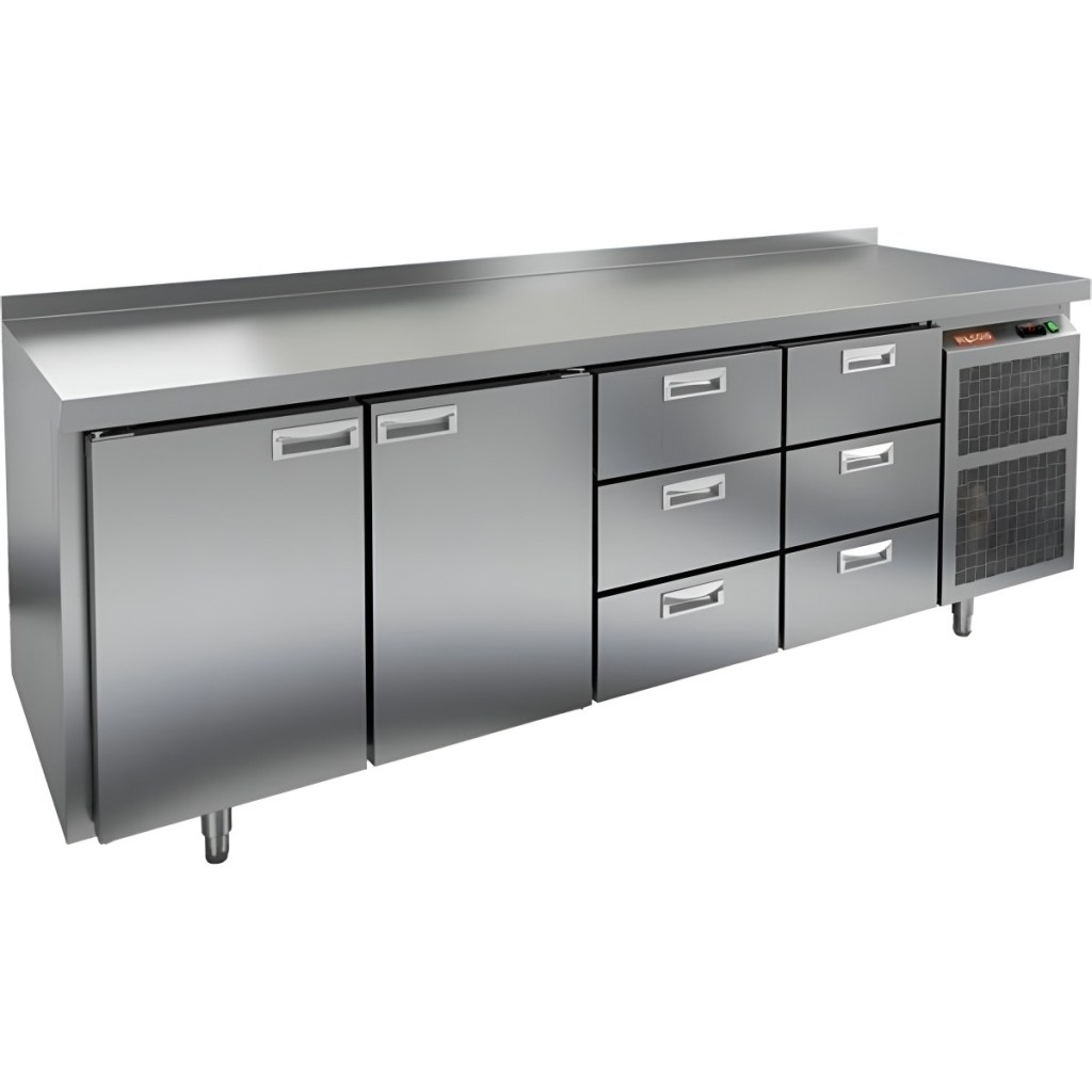 Каталог оборудования Холодильное оборудованиеСтолы охлаждаемыеСтолы холодильные среднетемпературныеСтол холодильный среднетемпературный HiCold GN 1133/TN Стол холодильный среднетемпературный HiCold GN 1133/TN Код товара: 001-334 Поделиться: WhatsAppTelegram СравнитьДобавить в КПВ избранное 0 259 192 ₽ В корзину 0 шт Под заказСамовывоз сегодня бесплатно Взять в кредит Купить в лизинг Получить консультацию в WhatsApp Описание Характеристики Отзывы 0 Инструкции 1 Стол холодильный среднетемпературный HiCold GN 1133/TN предназначен для обработки ингредиентов и кратковременного хранения скоропортящихся продуктов и напитков на предприятиях общественного питания и торговли. Модель оснащена удобной электронной панелью управления. Корпус и столешница выполнены из прочной и гигиеничной нержавеющей стали. В комплект входят 2 полки для размещения продуктов. Особенности: 2 распашные двери обеспечивают быстрый и удобный доступ к охлаждаемому отделению. 6 выдвижных секций позволяют рационально организовать внутреннее пространство и ускорить доступ к ингредиентам. Автоматические доводчики дверей с фиксатором открытого положения повышают комфорт при эксплуатации. Легкозаменяемые магнитные уплотнители обеспечивают надёжную герметичность и упрощают техническое обслуживание. Регулируемые по высоте ножки дают возможность выровнять стол на неровной поверхности. Толщина столешницы — 50 мм, что делает её устойчивой к механическим нагрузкам. Высота борта — 50 мм предотвращает скатывание продуктов и жидкостей с поверхности. Толщина теплоизоляции — 50 мм, что способствует поддержанию стабильной температуры и снижению энергозатрат. Диапазон температуры окружающего воздуха — от 12 до 37 °C, что делает модель универсальной для различных условий эксплуатации. HiCold GN 1133/TN — это практичный и надёжный холодильный стол, сочетающий удобство работы, продуманную организацию внутреннего пространства и высокую энергоэффективность. Идеально подходит для профессиональных кухонь.Изображение товара, представленного на фото, может отличаться от его фактического вида. Показать все Габаритные размеры2280×700×850 ммДиапазон рабочей температурыот -2 до +10 °CРасположение агрегатаБоковое Материал столешницыНержавеющая Тип столаС дверьми и ящиками Тип двериГлухая Объём660 лКоличество дверей2 штКоличество полок2 штКоличество ящиков6 штРазмер полки530×325 ммНапряжение220 ВМощность0,48 кВтТип охлажденияДинамический Тип оттайкиАвтоматическая СтолешницаС бортом Вес нетто212 кгВес брутто236 кгБрендHicoldВсе холодильные столы HicoldВсе нержавеющие холодильные столы Все холодильные столы с бортом Оставить отзыв Еще никто не оставил отзыв на этот товар Паспорт на HICOLD GN 1133/TN.pdf Похожие товары Перейти в каталог В наличии 139 401 ₽ Стол холодильный среднетемпературный HiCold GN 1111 BR2 TN В наличии 113 121 ₽ Стол холодильный среднетемпературный HiCold GN 1111/TN W Под заказ 148 851 ₽ Стол холодильный среднетемпературный HiCold SN 1111/TN W В наличии 139 583 ₽ Стол холодильный среднетемпературный Cooleq GN4200TN с бортом С этим товаром покупают Под заказ 203 827 ₽ Шкаф морозильный Abat ШХн-1,4 Ранее просмотрено Под заказ 170 651 ₽ Сплит-система холодильная низкотемпературная Север BGSF 218 S L4 В наличии 131 439 ₽ Моноблок холодильный среднетемпературный Intercold ММСМ-223/380 FT T (опция -10° С) Под заказ 136 844 ₽ Сплит-система холодильная среднетемпературная Polair SM 111 Р Под зак