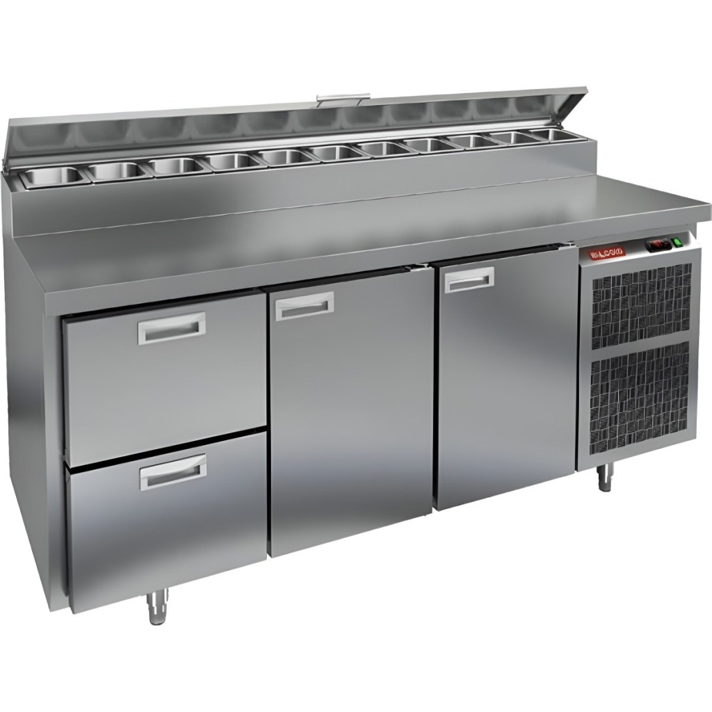 Каталог оборудования Холодильное оборудованиеСтолы охлаждаемыеСтолы холодильные для пиццыСтол холодильный для пиццы HiCold PZ2-211/GN (1/6H) Стол холодильный для пиццы HiCold PZ2-211/GN (1/6H) Код товара: 064-771 Поделиться: WhatsAppTelegram СравнитьДобавить в КПВ избранное 0 244 971 ₽ В корзину 0 шт Под заказСамовывоз сегодня бесплатно Взять в кредит Купить в лизинг Получить консультацию в WhatsApp Описание Характеристики Отзывы 0 Стол холодильный для пиццы HiCold PZ2-211/GN (1/6H) предназначен для кухонь и предприятий общественного питания. Он используется для раскатки теста, подготовки ингредиентов для пиццы, салатов и других блюд, а также для охлаждения и кратковременного хранения скоропортящихся продуктов. Модель совмещает нержавеющую рабочую поверхность и охлаждаемый отсек с 2 дверями и 2 выдвижными ящиками, обеспечивая удобный доступ к ингредиентам и эффективное хранение. Особенности: Динамическая система охлаждения для равномерного поддержания температуры Автоматическая оттайка для удобного обслуживания Электронная панель управления для точной настройки параметров Вместительная внутренняя полка формата GN 1/1 (размер 530×325 мм) 2 двери и 2 вместительных ящика для хранения ингредиентов Автоматические доводчики дверей с фиксатором открытого положения Легкозаменяемые магнитные уплотнители для герметичности Открытая агрегатная часть для легкого доступа к компонентам Регулируемые по высоте ножки для устойчивости Нержавеющая столешница глубиной 486 мм и толщиной 50 мм — устойчива к коррозии, легко моется и гигиенична Толщина теплоизоляции: 50 мм Максимальная глубина гастроемкостей: 100 мм Вместимость салат-бара: 11 гастроемкости Стол холодильный HiCold PZ2-211/GN (1/6H) — это надежное и удобное решение для профессиональной кухни. Он обеспечивает легкий доступ к ингредиентам, упрощает хранение и подготовку продуктов и полностью соответствует стандартам предприятий общественного питания.Изображение товара, представленного на фото, может отличаться от его фактического вида. Показать все Габаритные размеры1835×700×1000 ммДиапазон рабочей температурыот +2 до +10 °CРасположение агрегатаБоковое Материал столешницыНержавеющая Тип столаС дверьми и ящиками Тип двериГлухая Объём505 лТип гастроемкостейGN 1/6 Количество дверей2 штКоличество ящиков2 штРазмер полки530×325 ммНапряжение220 ВМощность0,5 кВтТип охлажденияДинамическое Тип оттайкиАвтоматическая Габариты в упаковке2000×850×1140 ммВес нетто172 кгВес брутто210 кгБрендHicoldВсе холодильные столы для пиццы HicoldВсе нержавеющие холодильные столы для пиццы Оставить отзыв Еще никто не оставил отзыв на этот товар Ранее просмотрено Под заказ 273 142 ₽ Стол холодильный для пиццы HiCold PZ1-1111GN (1/3) M Под заказ 260 272 ₽ Стол холодильный для пиццы HiCold PZ1-113GN (1/3H)
