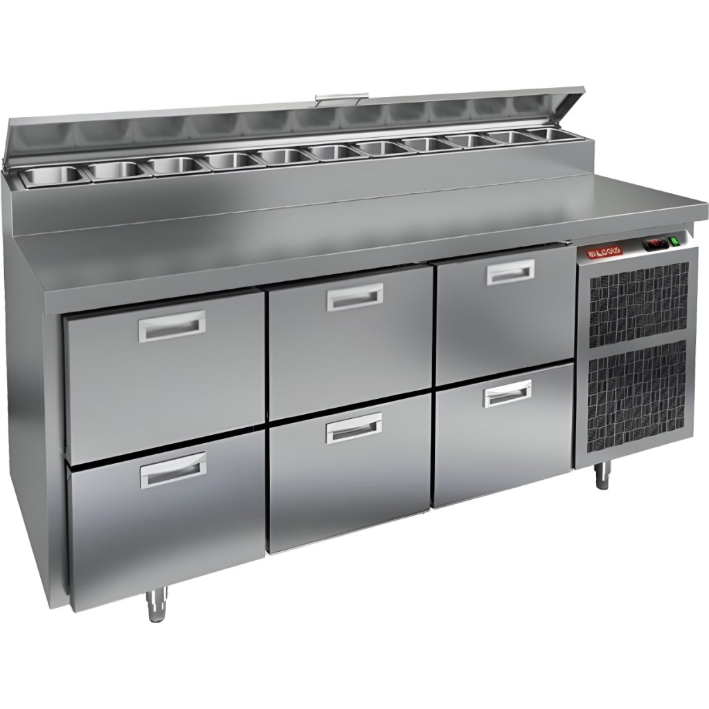 Каталог оборудования Холодильное оборудованиеСтолы охлаждаемыеСтолы холодильные для пиццыСтол холодильный для пиццы HiCold PZ2-222GN (1/6) Стол холодильный для пиццы HiCold PZ2-222GN (1/6) Код товара: 064-774 Поделиться: WhatsAppTelegram СравнитьДобавить в КПВ избранное 0 306 171 ₽ В корзину 0 шт Под заказСамовывоз сегодня бесплатно Взять в кредит Купить в лизинг Получить консультацию в WhatsApp Описание Характеристики Отзывы 0 Стол холодильный для пиццы HiCold PZ2-222GN (1/6) предназначен для кухонь и предприятий общественного питания. Он используется для раскатки теста, подготовки ингредиентов для пиццы, салатов и других блюд, а также для охлаждения и кратковременного хранения скоропортящихся продуктов. Модель совмещает нержавеющую рабочую поверхность и охлаждаемый отсек с 6 выдвижными ящиками, обеспечивая удобный доступ к ингредиентам и эффективное хранение без дверей. Особенности: Динамическая система охлаждения для равномерного поддержания температуры Автоматическая оттайка для удобного обслуживания Электронная панель управления для точной настройки параметров Вместительная внутренняя полка формата GN 1/1 (размер 530×325 мм) 6 выдвижных ящиков для хранения ингредиентов Легкозаменяемые магнитные уплотнители для герметичности Открытая агрегатная часть для легкого доступа к компонентам Регулируемые по высоте ножки для устойчивости Нержавеющая столешница глубиной 486 мм и толщиной 50 мм — устойчива к коррозии, легко моется и гигиенична Толщина теплоизоляции: 50 мм Максимальная глубина гастроемкостей: 100 мм Вместимость салат-бара: 11 гастроемкости Стол холодильный HiCold PZ2-222GN (1/6) — это надежное и удобное решение для профессиональной кухни. Он обеспечивает легкий доступ к ингредиентам, упрощает хранение и подготовку продуктов и полностью соответствует стандартам предприятий общественного питания.Изображение товара, представленного на фото, может отличаться от его фактического вида. Показать все Габаритные размеры1835×700×1000 ммДиапазон рабочей температурыот +2 до +10 °CРасположение агрегатаБоковое Материал столешницыНержавеющая Тип столаС ящиками Объём505 лТип гастроемкостейGN 1/6 Количество ящиков6 штНапряжение220 ВМощность0,5 кВтТип охлажденияДинамическое Тип оттайкиАвтоматическая Габариты в упаковке2000×850×1140 ммВес нетто172 кгВес брутто210 кгБрендHicoldВсе холодильные столы для пиццы HicoldВсе нержавеющие холодильные столы для пиццы Оставить отзыв Еще никто не оставил отзыв на этот товар Ранее просмотрено Под заказ 236 872 ₽ Стол холодильный для пиццы HiCold PZ1-111GN (1/3) М Под заказ 250 642 ₽ Стол холодильный для пиццы HiCold PZ1-1111GN (1/3)