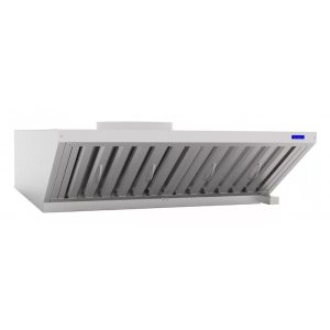 Зонт подключается к однофазной сети 220 В с обязательным заземлением корпуса, для чего используется медный трёхжильный шнур ПВС-ВП. Один встроенный вентилятор обеспечивает производительность до 1400 м3/ч, при этом скорость воздушного потока не превышает 0,4 м/с, что безопасно для персонала и не вызывает простуд. Уровень шума во время работы не превышает 60 дБ, что позволяет устанавливать оборудование не только на изолированных кухнях, но и в кафе или ресторанах с открытой планировкой.